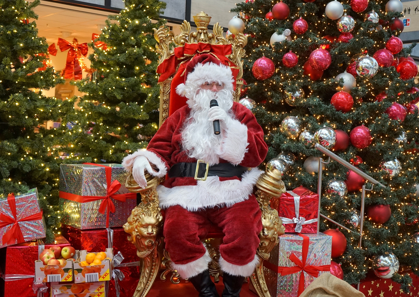 Der Weihnachtsmann verteilt vom 28. November bis 20. Dezember donnerstags und freitags von 14 – 17 Uhr und samstags von 10 – 12 und 14 – 17 Uhr sowie am Montag und Dienstag vor Weihnachten von 14 – 17 Uhr Präsente und Süßigkeiten an Groß und Klein.